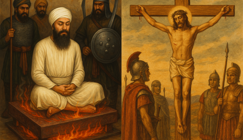 In contrast, the Sikh gurus were condemned to death by the emperor and died as martyrs